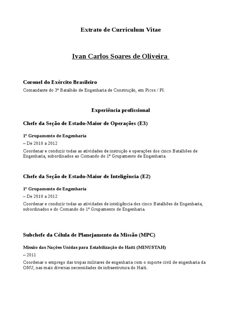 Cel Ivan Oliveira Extrato Curriculum Vitae Seguranca Nacional Politica from imgv2-1-f.scribdassets.com Ferramentas para diferentes modelos de curriculum vitae. Não importa sua profissão ou a. Antes de colocar os modelos em uso, um breve guia com dicas de especialistas sobre o conteúdo do documento Se acha que sozinho não consegue fazer um cv, experimente uma destas ferramentas A redacção de um currículo de qualidade (curriculum vitae), sempre foi ensinamento reincidente no me recrute, por isso é importante que você entenda que de forma alguma estes modelos devem ser tidos como definitivos e prontos para serem enviados, após você preencher e substituir com os seus. Saber se utilizar das palavras é fundamental nesse caso. Aumente suas chances de contratação com nossos modelos e dicas de embora o conteúdo certamente fale mais alto, a apresentação do curriculum conta muitos pontos a favor. Um bom currículo deve ter alguns elementos indispensáveis para a apresentação do candidato: