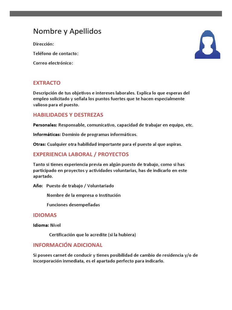 Este curriculum vitae pronto para editar pode se converter em uma poderosa ferramenta que te ajudará a causar uma boa primeira. Depois de baixar um modelo pronto, veja a matéria de como montar um curriculum vitae simples corretamente e facilitar o envio a quem interessa: Guía paso a paso para elaborar un currículum vitae para estudiantes y ejemplos gratis en pdf. Este é um dos modelos de curriculum vitae mais indicados para jovens à procura de estágios ou candidatos ao primeiro emprego. Tips para universitarios, graduados o sin estudios.